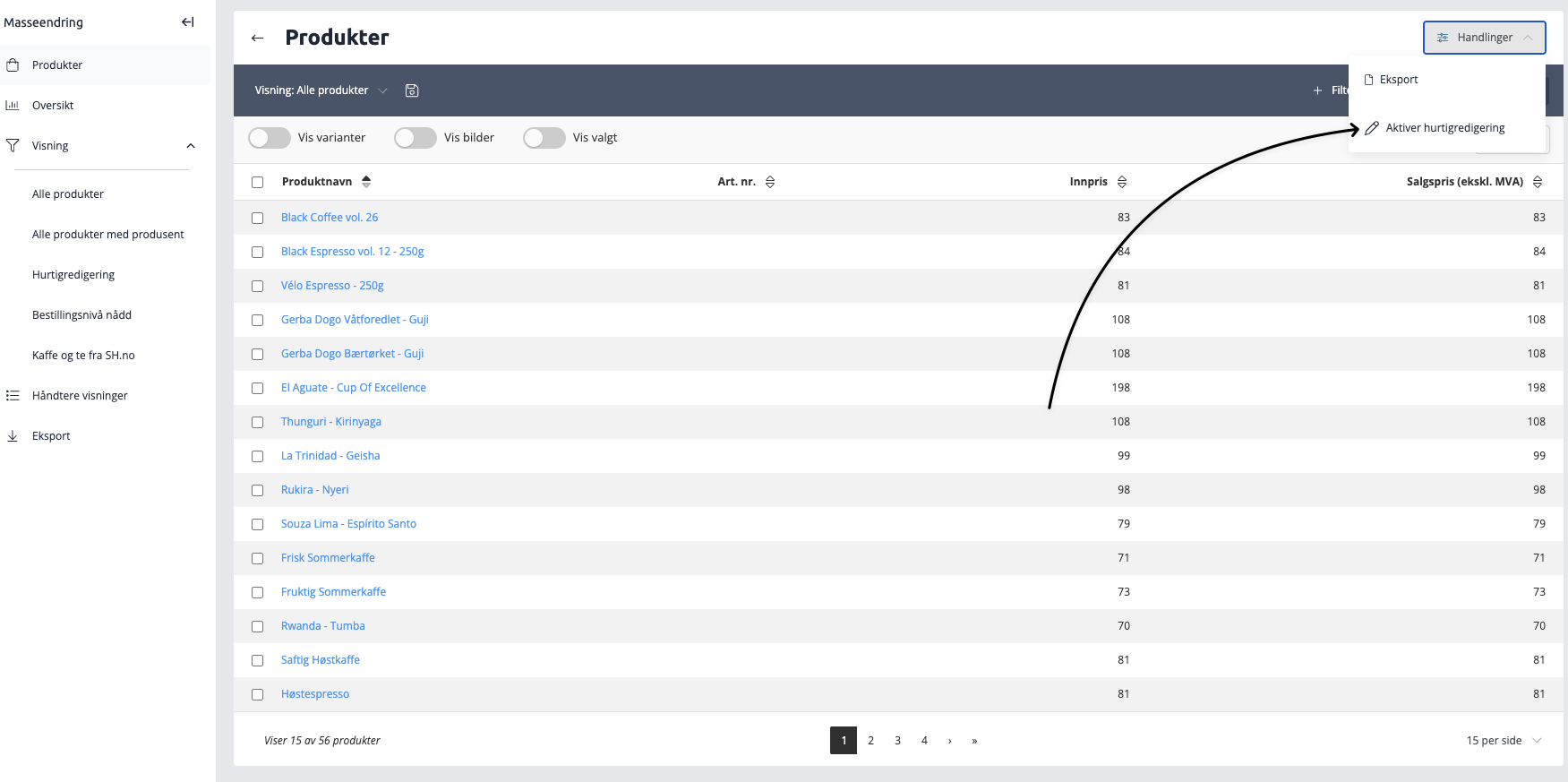 Innan du börjar redigera bör du begränsa urvalet så att du bara ser de produkter du behöver arbeta med. Detta görs via landningssidan för massredigeraren.